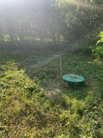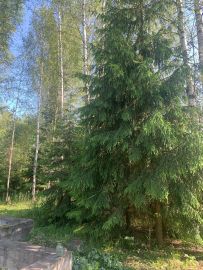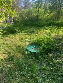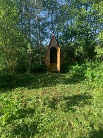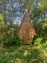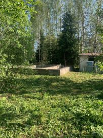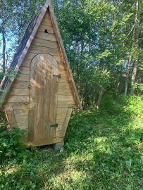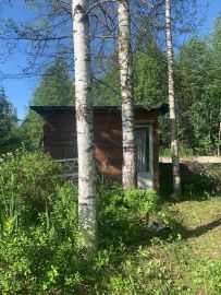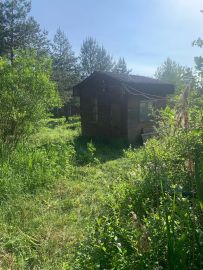 Сарай для утвари . Скважина с круглогодичной водой . На участке растут грибы ) есть плодовые деревья ,кусты ежевики . Вдоль дороги высажены ели
