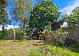 Земельный участок 9 сот, огорожен забором, имеет небольшой уклон в сторону маленькой речки протекающей в 100 метрах за участком. По факту пользования 0,5 Га огорожено забором, можно оформить в аренду или приобрести у муниципалитета, если надо, то до 2 Га.