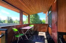 На первом этаже кухня-гостиная, спальня, с/у, веранда остеклённая 21м², и открытая трасса на крыльце.