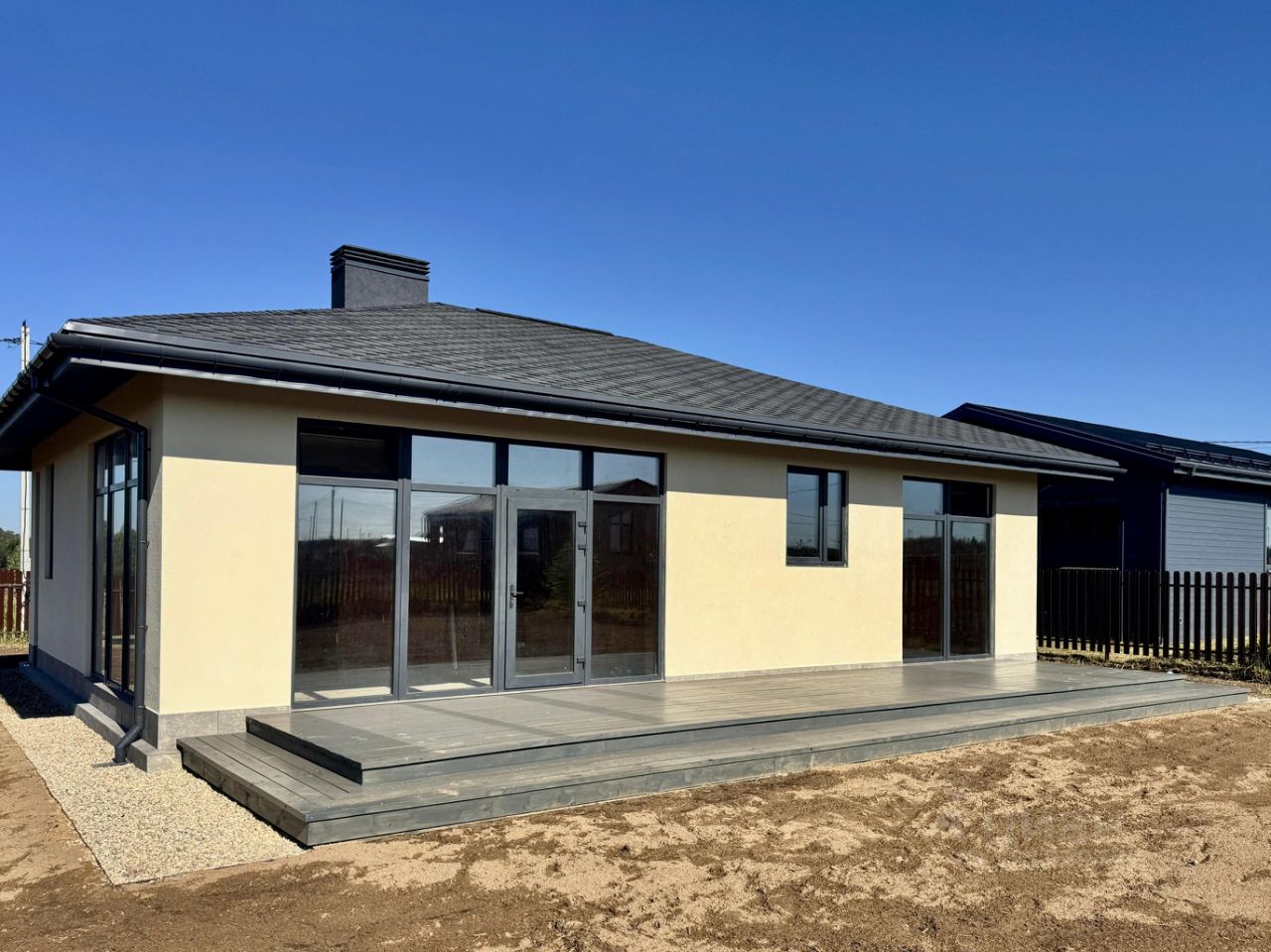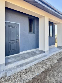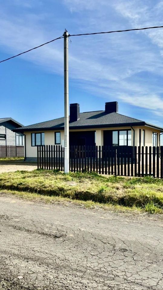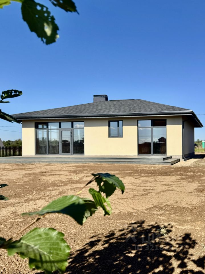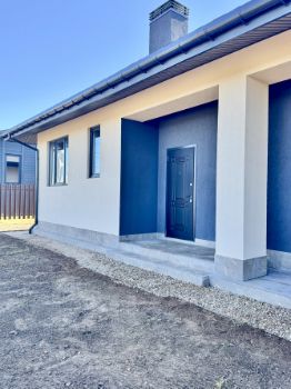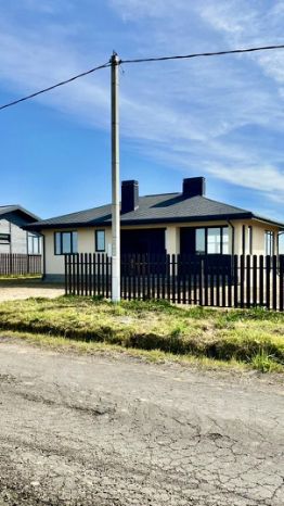 Продается новый кирпичный одноэтажный дом с панорамным остеклением и большой террасой на ровном участке правильной формы площадью 10 сот. Площадь дома 130 м2. Высота потолка от 4 до 6 м. Планировка дома включает в себя просторную гостиную с кухонной зоной, 2 спальни, кабинет, санузел, хозяйственную комнату.