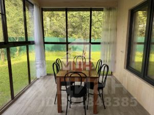 веранда с панорамным остеклением со столом и диваном