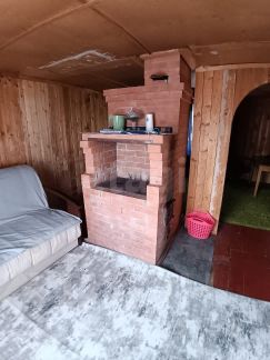 Дом двухэтажный, обшит изнутри деревянной вагонкой, что создает комфортный микроклимат. На первом этаже расположена просторная кухня и большая гостиная, зонированная на две функциональные зоны. Центральным элементом гостиной служит кирпичная печь, обеспечивающая эффективное отопление всего дома. На втором этаже находится изолированная спальня. В доме остаются водонагреватель, кухонный гарнитур и мебель, что позволяет заселиться сразу после покупки.