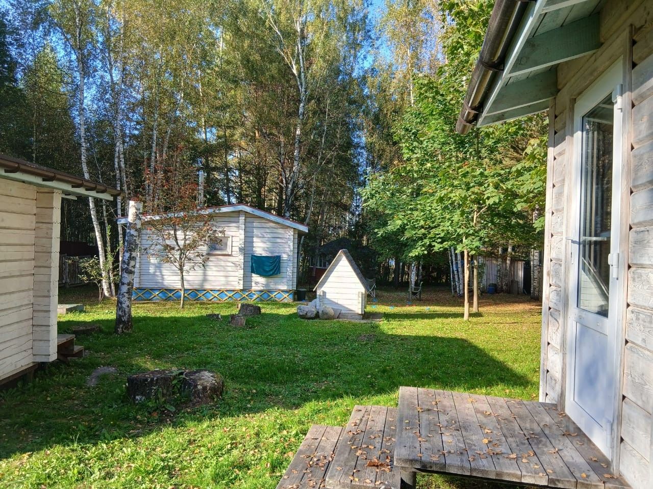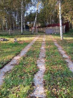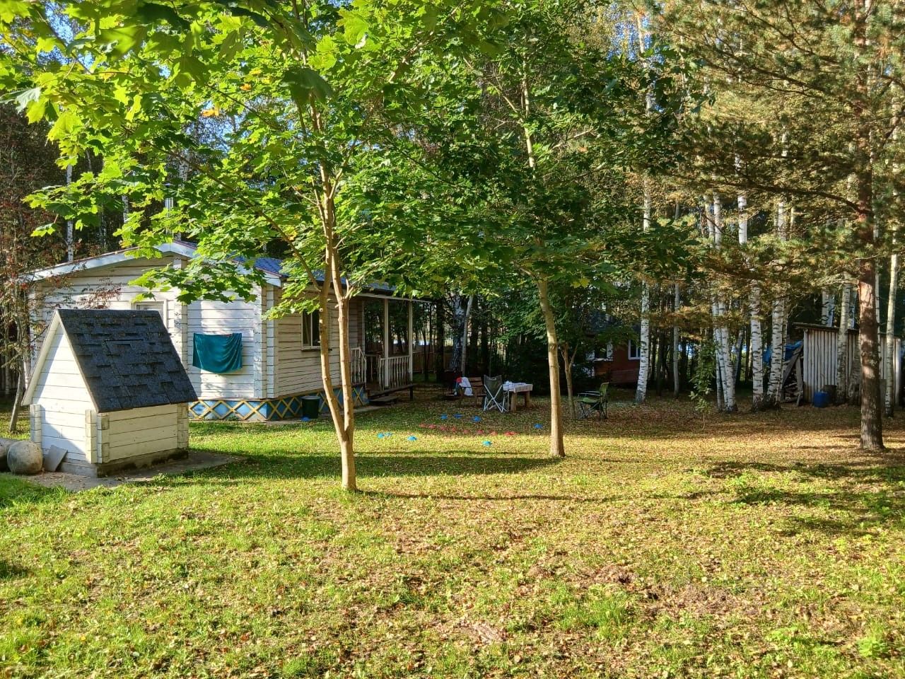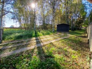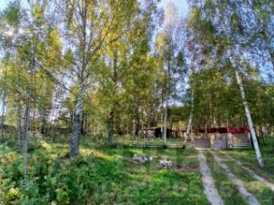 На участке большое количество деревьев: сосны, ели, березы, и другие лиственные. Свой мини-лес с грибами.