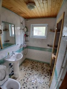-Жилой дом основной: 30 м², из бруса, на фундаменте. В доме: широкое спальное место на 4-х человек, кухня, санузел и душ с тёплым полом (испанская плитка и сантехника), парная-сауна с дровяной печью Harvia, прихожая для хранения и летняя терраса.