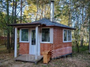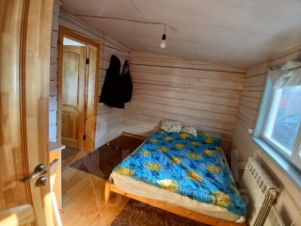 - Гостевой дом 2 из бруса: прихожая-кухня с мойкой и холодильником, спальня с двуспальной кроватью. Все для круглогодичного проживания: санузел и душ, электричество, горячая/холодная вода, отопление, канализация.