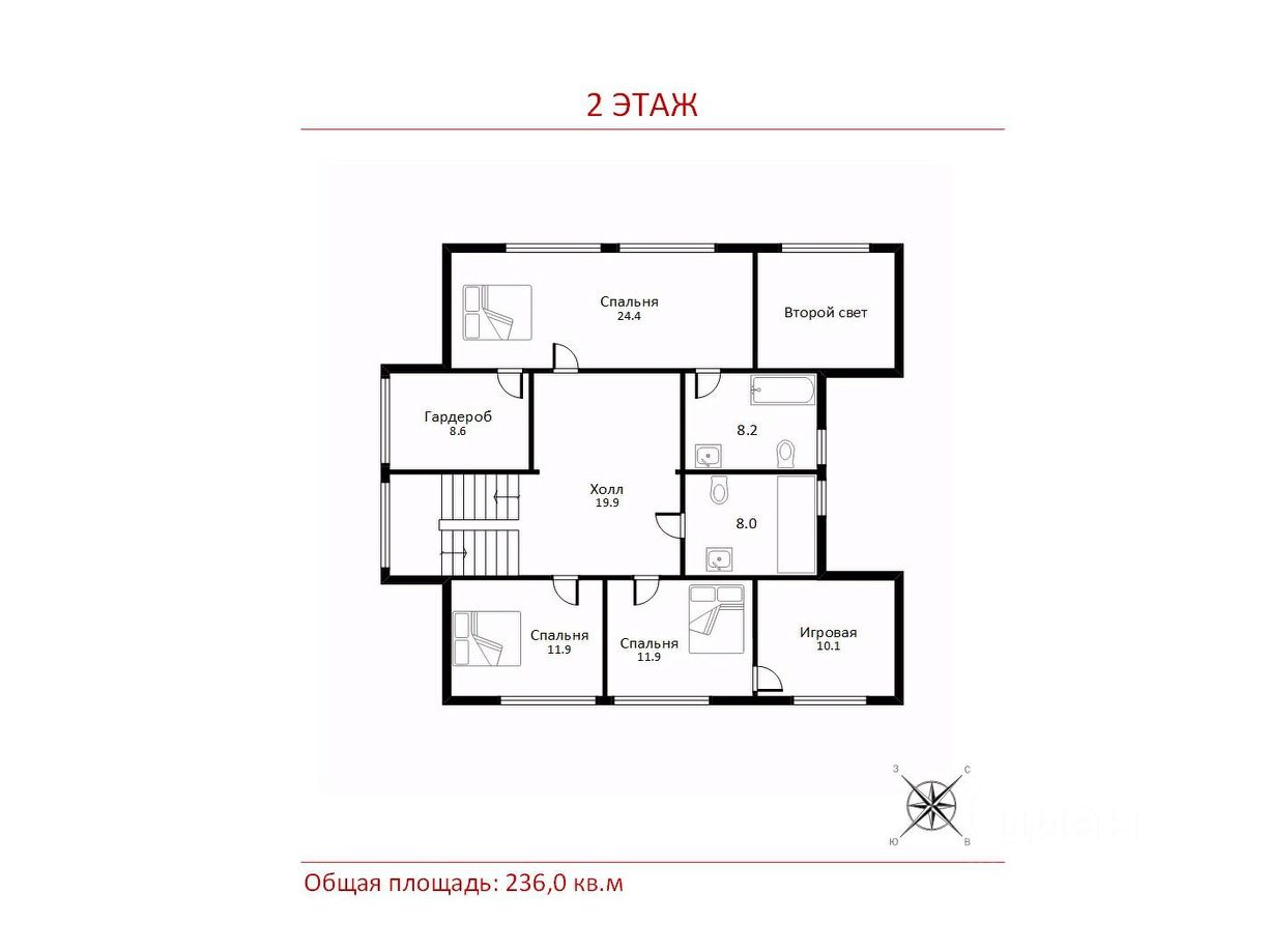 2 этаж: холл, мастер спальня с с/у и гардеробной, спальня детская, спальня детская с игровой комнатой, с/у.