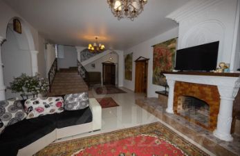 В доме два просторный зала,на 1-м этаже с дровяным камином,зал второго этажа с колоннами и эркером. Каждое окно с панорамным видом и является своеобразным украшением интерьера. Также в доме просторная кухня с окном перед мойкой, три спальни, две ванных комнаты, гараж, подвал. Коммуникации централизованные.