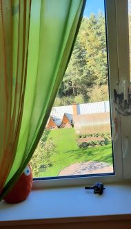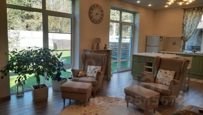 На 1-м этаже: комфортная прихожая, просторная и светлая кухня-гостиная с панорамными окнами с видом на сосны, большая душевая комната с окном. Во всех помещениях первого этажа теплые полы.