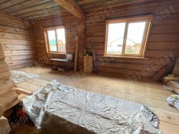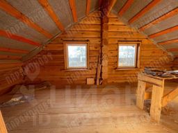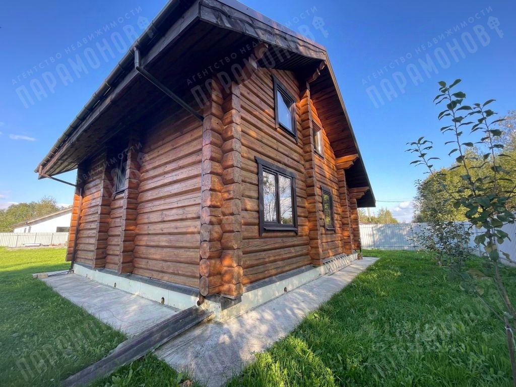 Дом состоит из двух этажей, построен из бревна (стены 23 см). Участок ровный, 10 соток, обнесен забором и откатными воротами. Имеется фундамент под баню (или гостевой домик) и сарай, утепленный 5х2,5 м.