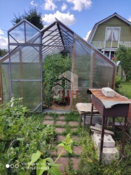 На участке есть недавно отремонтированная теплица из поликарбоната, колодец на 5 колец с насосом и шлангом, а также полный ассортимент садовых инструментов, включая лёгкий триммер на электроаккумуляторах.