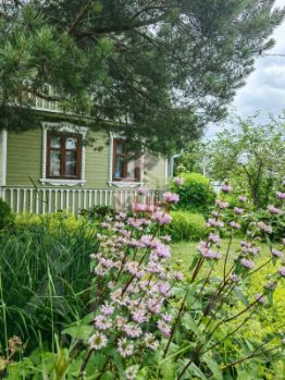 По периметру участка растут яблони, груша, вишни, калина. Из ягод вас порадуют жимолость, жёлтый и красный крыжовник, чёрная и красная смородина, малина, а также 5 грядок клубники, земляника и ежевика. По всему участку - цветники с десятками декоративных многолетников и цветов. Сад цветёт с ранней весны до поздней осени: от подснежников и пушкинии до сортовых ирисов, пионов и гортензии.