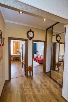 Новым собственникам остаётся красный диван, шкаф и встроенная мебель в большой гардеробной.