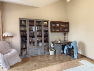 При продаже остается кухонный гарнитур со встроенной техникой, стол и стулья, камин, шкаф-купе в прихожей.