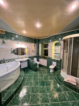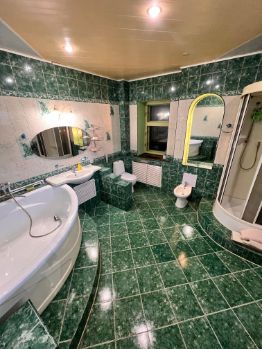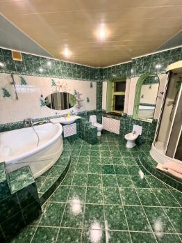 Материал стен- кирпич , индивидуальное отопление от газового котла . Все коммуникации центральные . Имеются просторный отапливаемый гараж , зимний сад , балкон и веранда на мансардном этаже .