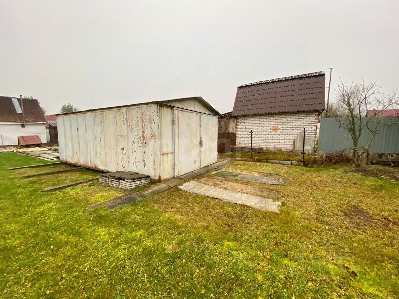 На участке стоит гараж.