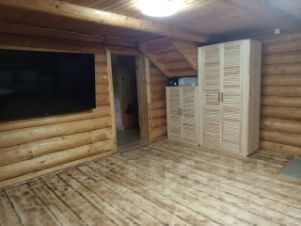 Дом построен в 2014 году, очень теплый, подготовлен фундамент для установки печного отопления. На первом этаже расположен сан узел, комната (гостиная/спальня) и кухня-гостиная. Второй этаж мансардный, с двумя отдельными спальнями.
