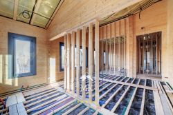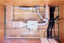В доме полностью выполнена вся внутренняя инженерия: разводка электричества, водоснабжения, канализации, отопления, вентиляции и кондиционирования, проложены теплые полы и сделаны выводы под радиаторы.