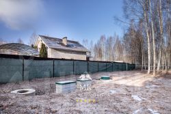 На участке помимо основного дома расположены: дом для персонала с гаражным комплексом, фундаменты под гостевой дом с банным комплексом и навес для автомобилей.