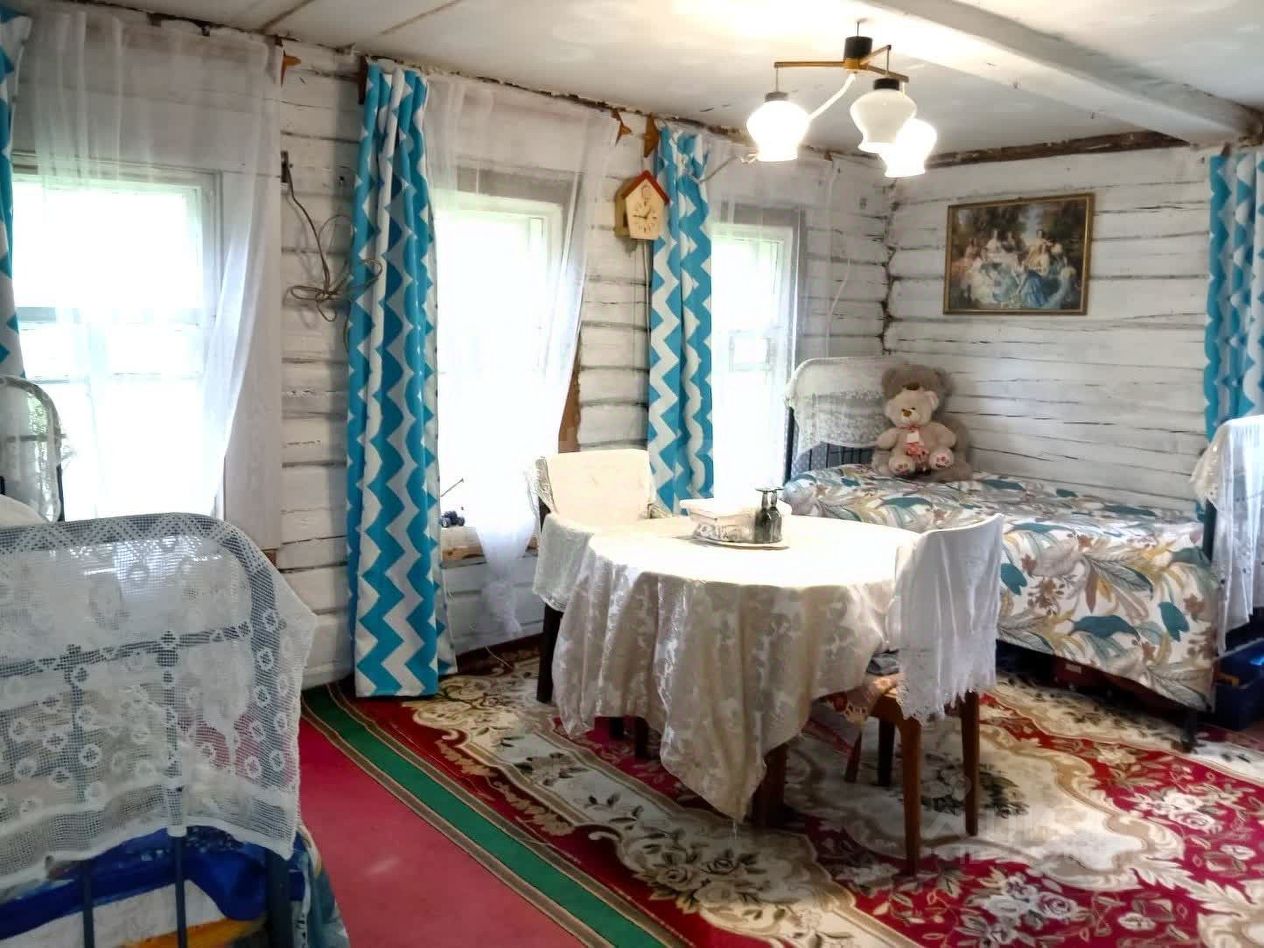 Дом возведен из бревна с дополнительной внешней обшивкой доской, что гарантирует высокую энергоэффективность и поддерживает комфортную температуру в любое время года. Внутреннее пространство отличается продуманной планировкой, включающей просторную кухню с зонированием, большую общую комнату и входную зону. Отопление организовано с помощью печи, создающей особую атмосферу и независимость от центральных сетей. В деревне присутствует центральное водоснабжение, колонка расположена в непосредственной близости от участка. К основному зданию примыкает капитальный сарай, представляющий потенциал для расширения жилой площади или организации мастерской.