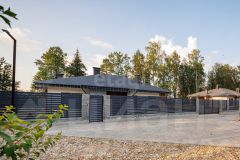 Предусмотрен забор (в едином стиле) фирмы GRANDLINE серии Техас с автоматическими (5 м) откатными воротами и калиткой!