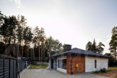 Фасад - декоративная штукатурка КвикМикс и отделка натуральным деревом (ЛИСТВЕННИЦА)