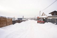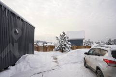 Благоустроенная территория включает огороженный по периметру участок с двором, отсыпанным щебнем, бетонными дорожками и парковкой на два автомобиля.