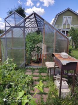 На участке есть недавно отремонтированная теплица из поликарбоната, колодец на 5 колец с насосом и шлангом, а также полный ассортимент садовых инструментов, включая лёгкий триммер на электроаккумуляторах.