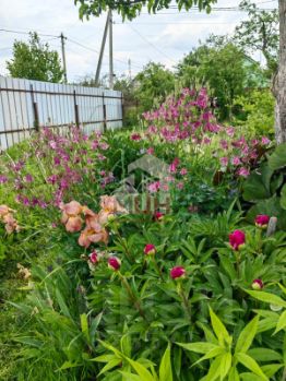 По периметру участка растут яблони, груша, вишни, калина. Из ягод вас порадуют жимолость, жёлтый и красный крыжовник, чёрная и красная смородина, малина, а также 5 грядок клубники, земляника и ежевика. По всему участку - цветники с десятками декоративных многолетников и цветов. Сад цветёт с ранней весны до поздней осени: от подснежников и пушкинии до сортовых ирисов, пионов и гортензии.