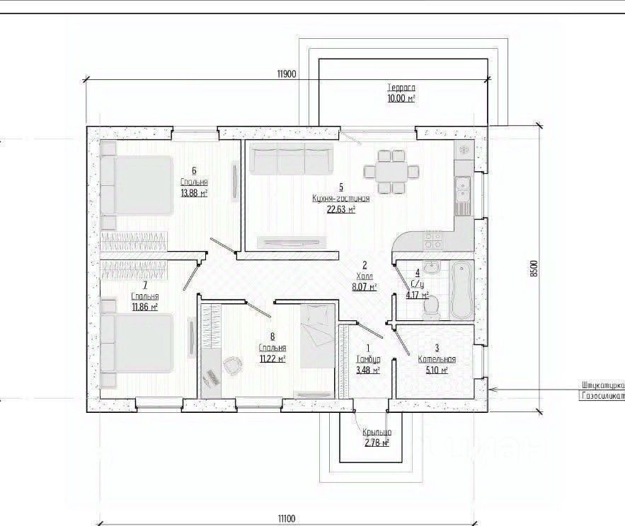 Дом теплый, светлый, с практичной планировкой!