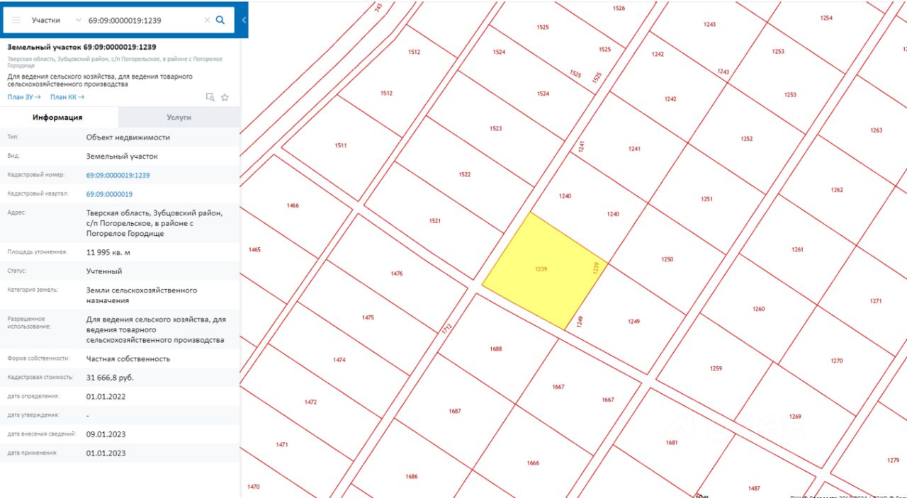 Объект 159081. Твоя история начинается здесь — приобрети свой гектар земли! (кадастр. 69:09:0000019:1239 или 69:09:0000019:1250 на выбор один из участков. цена за один участок,если будет желание приобрести оба,то можно со скидкой)