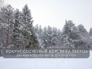 - Вокруг сосновый бор, река Тверца — здесь всегда свежий воздух, спокойствие и природное окружение. Идеальная атмосфера для комфортной жизни всей семьи.