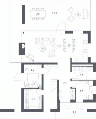 Уютные балконы обеспечат дополнительное пространство для отдыха на природе. Наслаждайтесь простором и светом, благодаря высоким окнам и панорамным видам.