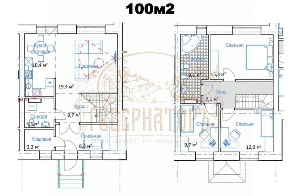 1 этаж: Просторная прихожая, кладовая, санузел и светлая кухня-гостиная сердце вашего дома.
