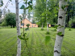 Участок 25 соток упирается в лес, участок ухоженный ровный, не обременен грядками и постройками, имеется хозпостройка с навесом.