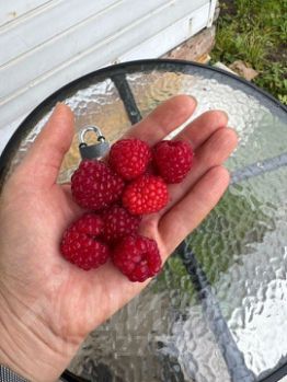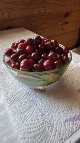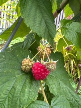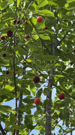 Имеется яблоня, вишни 2 вида , крыжовник , малина 3 сортов , ежевика посажена в прошлом году. , черная смородина много кустиков старых и новых, красная смородина.