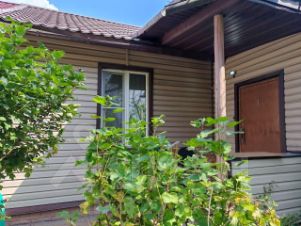 Дом построен по каркасной технологии, обшит сайдингом, крыша крытая металлочерепицей.