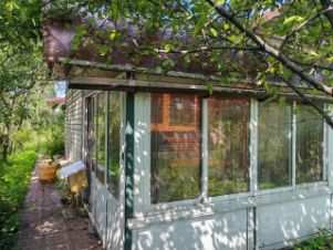 Есть гараж для авто и хранения инструментов. В пользовании земля для грядок и теплицы, посажено много плодовых деревьев- яблони, вишни, ягодные кусты.