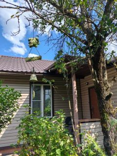 В палисаднике к дому пристроена летняя кухня-беседка, рядом мангальная зона.