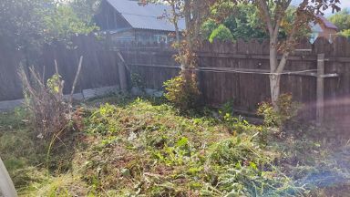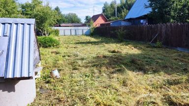Вдоль улицы участок огорожен крепким забором из профлиста. Много фруктовых и ягодных кустов и деревьев-яблони, груша, слива, малина, красная смородина и черноплодная рябина. Достаточно места для новых идей и посадок.