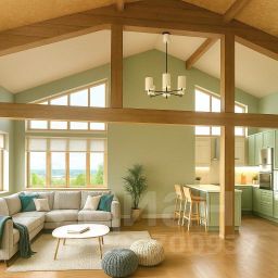 Дом 160 м2 построен из клеёного бруса 250х200 мм, в одном уровне, окна стеклопакеты панорамные в пол, капитальная фундаментная плита, есть подвал 3х3 м.