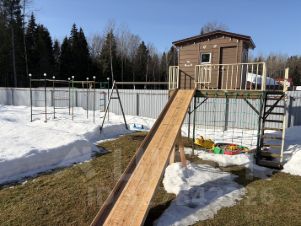 Установлена большая детская спортивная площадка с домиком и большой горкой.