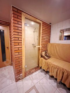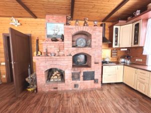 На первом этаже просторная гостиная с печью и обеденной зоной, кухня оборудована самой современной техникой и русской печью, на которой также можно готовить. Из гостиной два выхода на веранду с панорамным видом на реку Волга. Есть также гостевая спальня, санузел и выход на нижний цокольный этаж, на котором располагается зона отдыха: бильярдная и сауна. На втором этаже расположены: санузел гостевой и три спальни, каждая из которых оформлена со вкусом и комфортом. Одна из них мастер-спальня с шикарным видом на реку и собственным санузлом и гардеробной.
