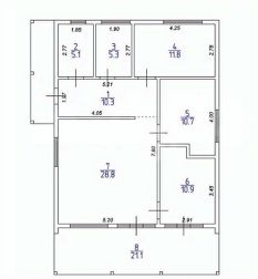 Дом построен с применением современных материалов: фундамент на железобетонных сваях, стены из сухой строганной доски с утеплением и ветро-влагозащитой, наружная отделка — имитация бруса. Крыша утеплена, покрыта фальцевой кровлей, установлены двухкамерные стеклопакеты.