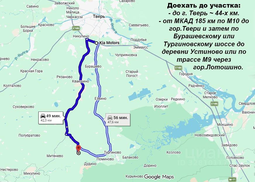 До г. Тверь ~ 44км, до c.Tуpгинoвo 8км.