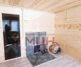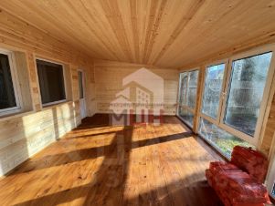 БАНЯ двухэтажная новая с евроремонтом 67,9 кв.м, из бревна плюс большая застекленная веранда. Снаружи отделана сайдингом, внутри - евровагонка. Окна пластиковые. На первом этаже: парилка с печью, просторная комната отдыха, санузел (душ, туалет). На втором этаже - просторная спальня.