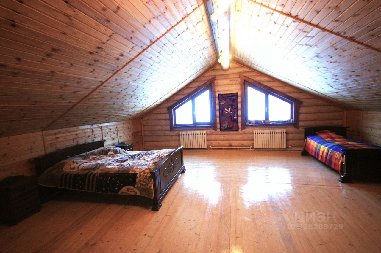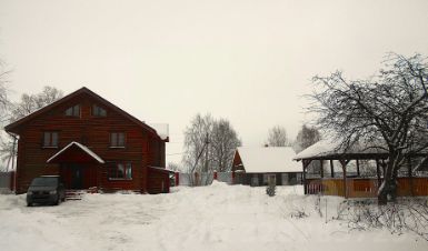 Предлагаемая усадьба состоит из 2-х бревенчатых домов, построенных на бетонных фундаментах. Большой 3-х этажный дом площадью 450 км2 предназначен для размещения до 15 человек.