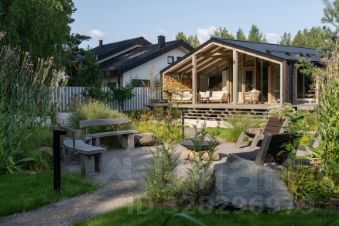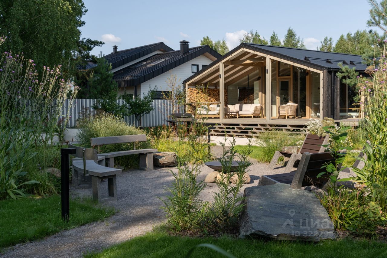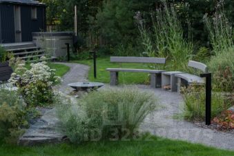 Участок благоустроен и продуман для жизни и отдыха: выполнен ландшафтный дизайн, установлена купель, организована уютная зона отдыха, высажены плодовые и декоративные деревья и кустарники.
