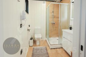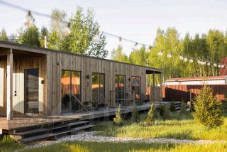 • Жилые дома: 6 отдельно стоящих строений площадью 30 м² с террасой 20 м². Каждый дом выполнен в авторском дизайне, полностью меблирован и оснащен современной техникой, включая системы умный дом.