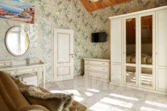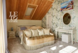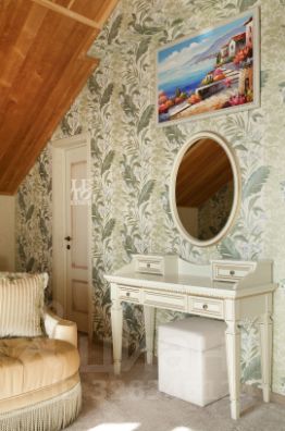 Внутреннее пространство выдержано в благородном стиле прованс. Особое внимание уделено натуральным материалам: потолки отделаны кедром, установлены деревянные стеклопакеты, а подоконники выполнены из природного мрамора. Атмосферу уюта дополняет изысканная мебель итальянского и испанского производства, которая гармонично сочетается с пастельной цветовой гаммой отделки.