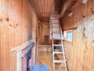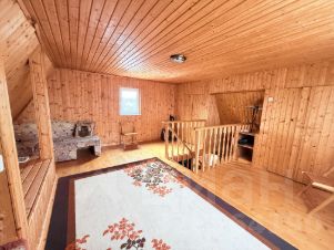 Дом на кирпичном фундаменте , щитовой , утеплен и отшит сайдингом. В доме выполнена отделка вагонкой . В обеих комнатах имеется много места для хранения вещей в строенных шкафах. Есть 2 колодца, один с торфяной водой для бани , и один с питьевой.